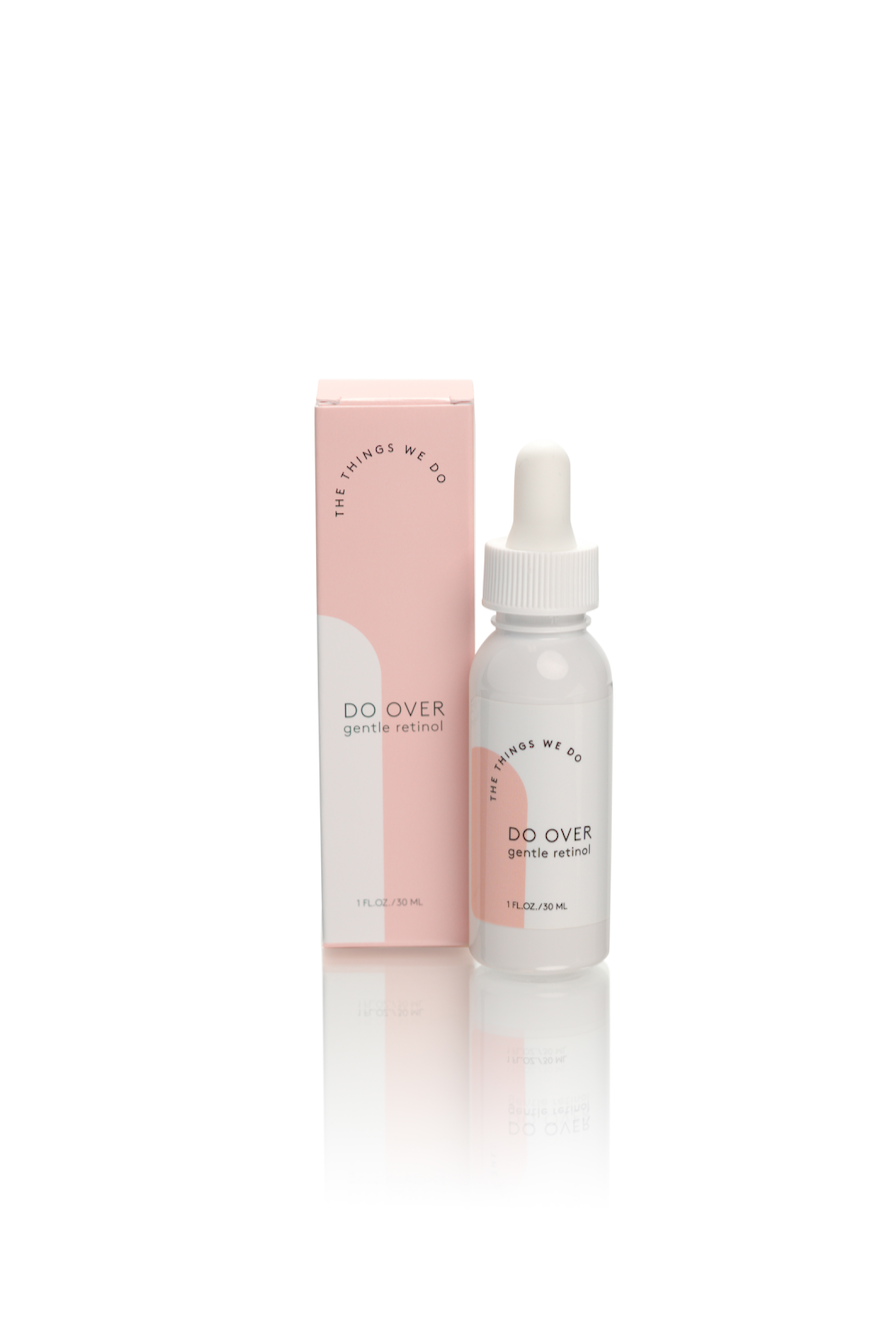 Note: Please use this product as directed and avoid contact with eyes. If irritation arises, discontinue use and consult a physician or your skincare professional. Be sure to protect areas where applied with sunscreen before going outside. This serum contains retinol, a stabilized Vitamin A which is great for boosting collagen production, but if you are pregnant or breastfeeding, we recommend suspending use of Do Over.